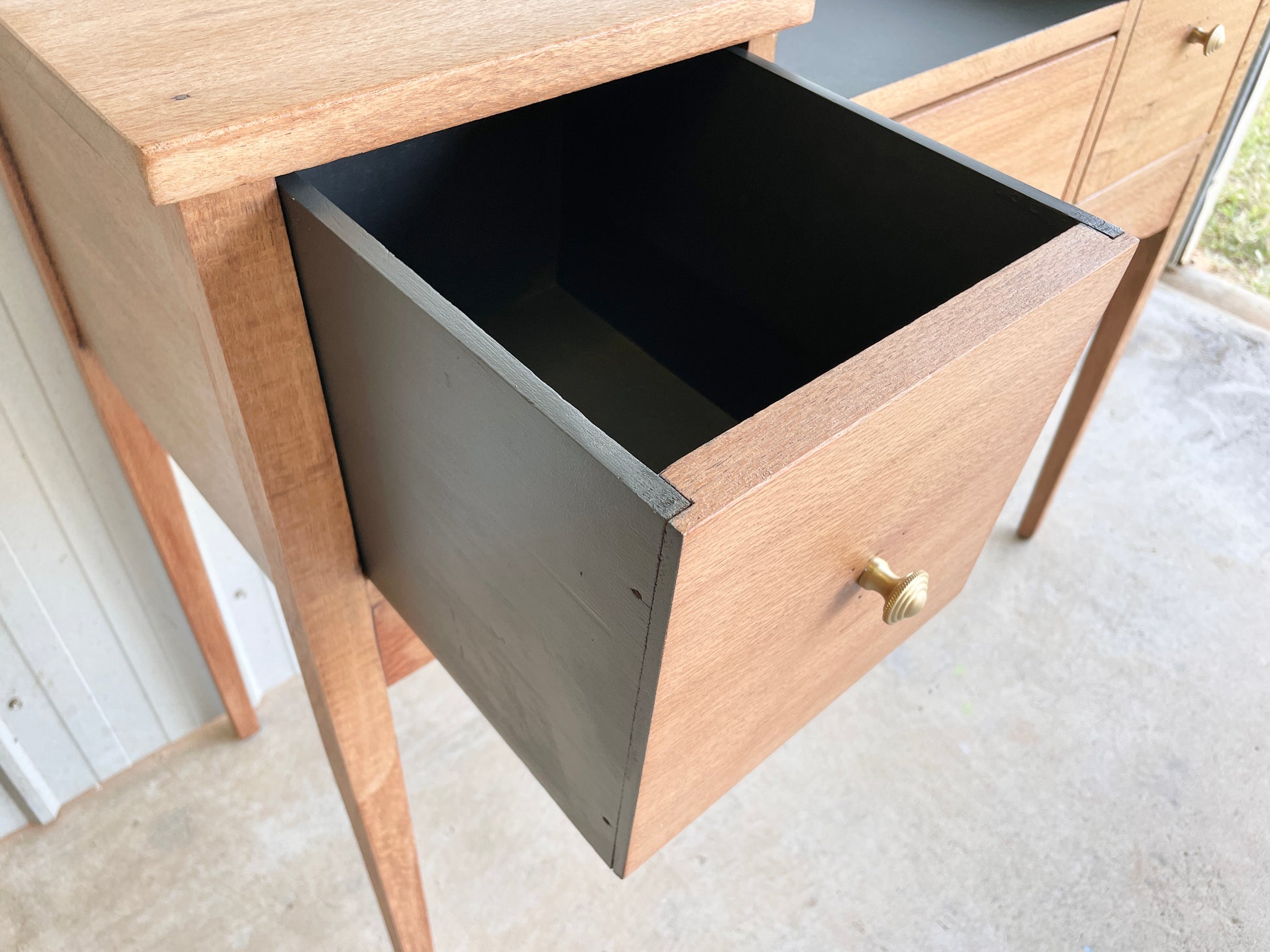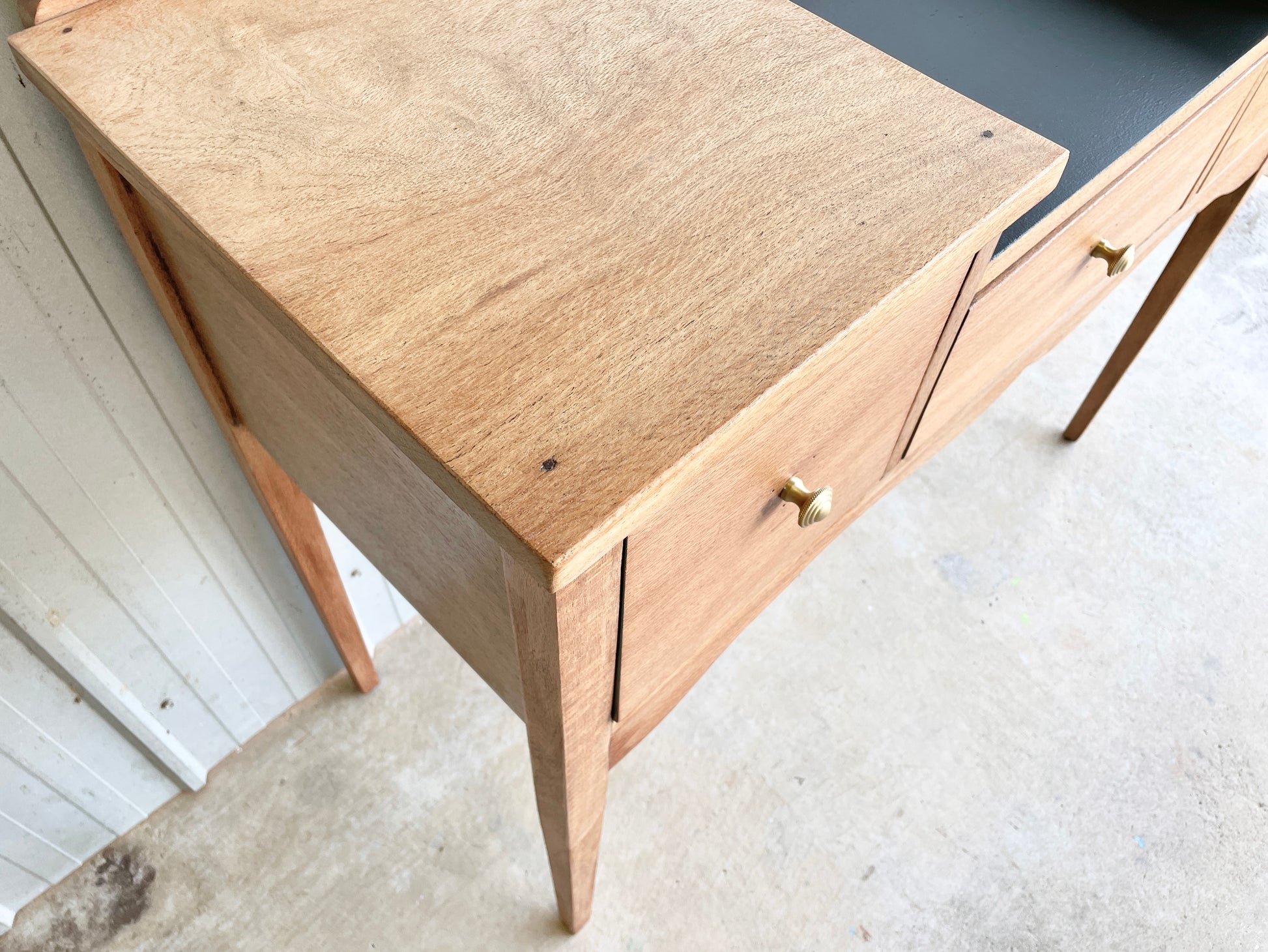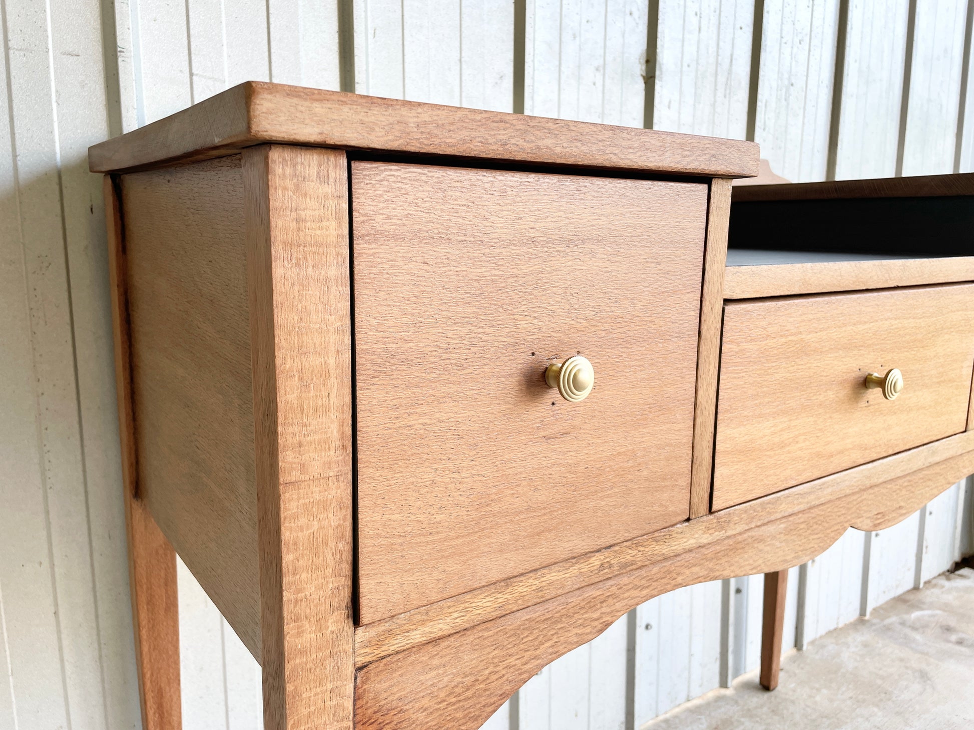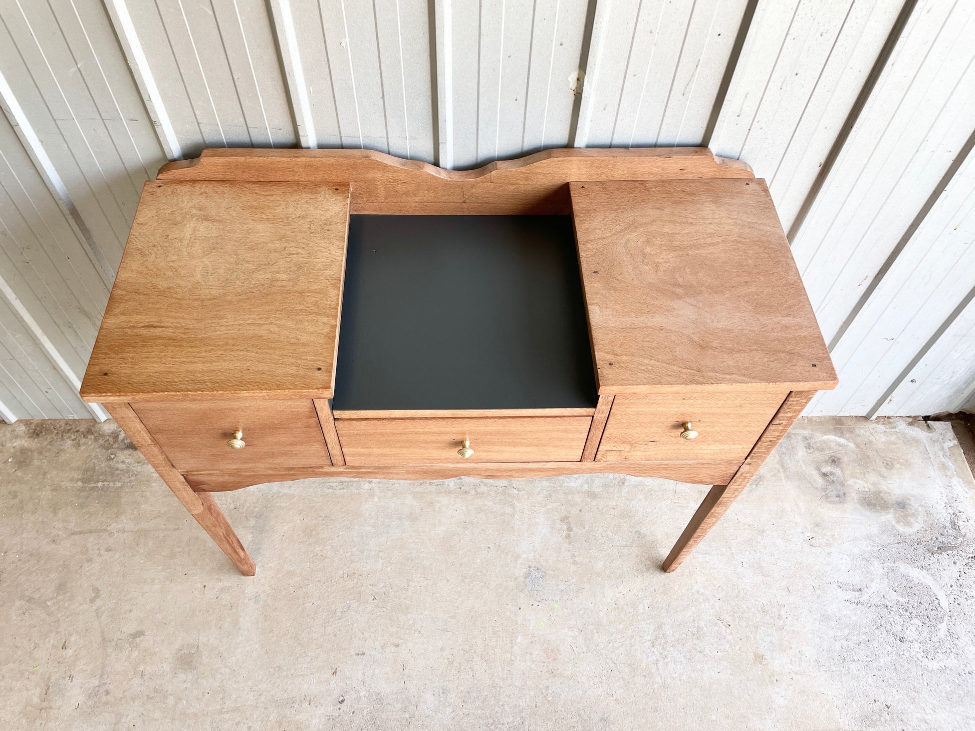 What more can we say other than this piece is just wow! Reclaimed antique Silky Oak Timber thats been sanded raw, then clear coated in a matt finish to leave you a silky smooth intricate timber grain that catches your gaze. The harder to reach central surface, drawers and backing have been painted in a black with olive undertone colour to give you a striking piece that offers deep storage and a generous surface space. Perfectly suited for the bedroom or a one of a kind statement piece for the entrance of your home!